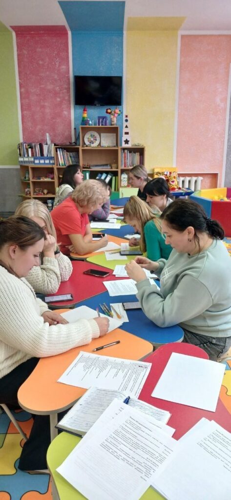 Практична частина засідання проходила у форматі роботи творчих груп. Учасники розробляли «карти дій» дитини щодо сталого розвитку, моделювали ігрові ситуації для розвитку відповідальності та ініціативності, а також проєктували елементи освітнього середовища, що сприяють реалізації підходів емпаурменту.